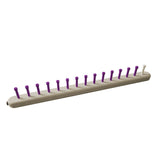 This 15" single rake straight loom is small and compact and can be used to create 10 stitch blankets with chunky yarns.  Use 2 strands of #6 or extra bulky yarn.