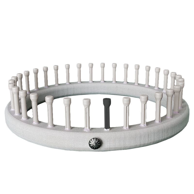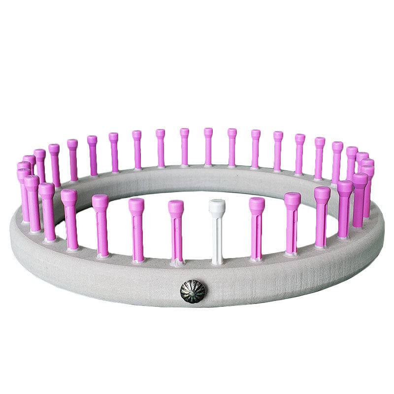 I Love the loom, however IF I had a say in the design I would NOT want the Black peg, it is very hard to work with dark yarn and know where the one needed is to be pulled up ... without taking the one that should remain on the peg ... also I'm not sure IF the 34 peg is actually large enough to go around the head of grade school aged children IT was suggested in your ad, however it seems not that much larger than my 31 peg ... sort of wanting it to be inches larger around to fit over the head a bit more ... NOT sure what to do. Elementary children are larger in size than per-school and our 4-year-old is really not that small ... the 34 peg barely goes over his head ... Sorry HELP!!