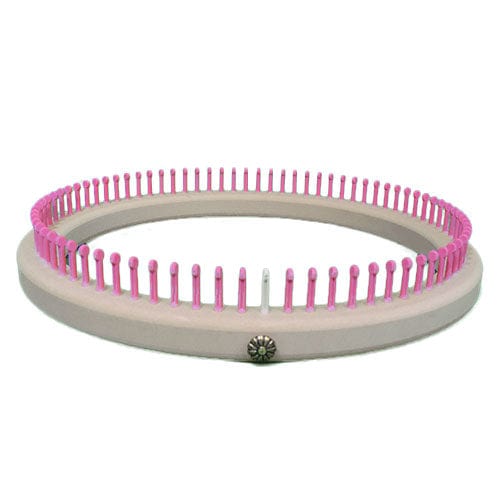Adult size hat loom, usually use uknit, true knit, or flat knit when working with small and fine gauge looms.