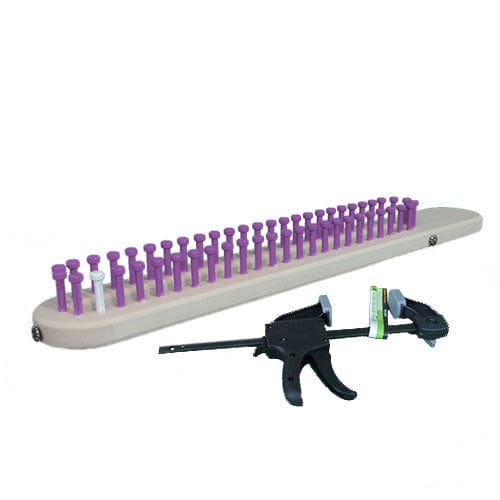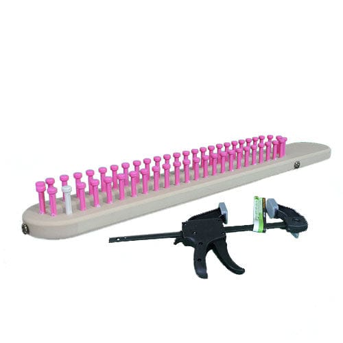 This specially designed loom with a long end makes it possible to use a c-clamp to attach the loom to a chair arm, table, or even a wheelchair arm. By clamping the loom you are able to knit on it one handed. It was specially made for a customer who had experienced a stroke and she was able to resume loom knitting. We are hoping that people with severe arthritis or limited arm mobility may find this loom a helpful tool for them.(Comes with a 3 inch C-Clamp to fit most tables or chairs, knitting aid and wedge) ergonomic picks available on amazon and etsy.