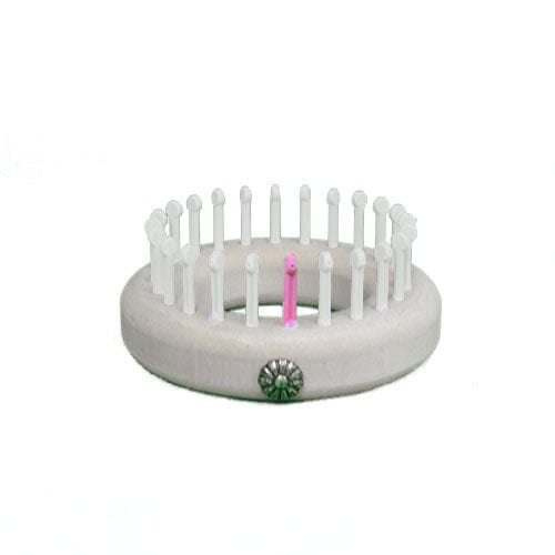 I used the 24 peg 3/8” gauge CinDWood loom for the book and every pattern is written in 24 peg format, but I include the fact you can use any 24 peg loom to make any of these patterns. There are only 2 patterns not in 24 peg format, but giving you options on other ways you can take the patterns in the book, and make them larger easily.