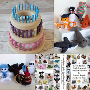 Scarlett royal designed each of these cute animals on our CinDWood 24 peg looms. Bundles comes with ebook + 3 different 24 peg looms. For small animals and finer yarn use the 3/8" 24 peg, for a little large use the 1/2" 24 peg and if you want bigger animals and chunky yarn use the 5/8" 24 peg . A great bundle allowing you to make all the different size animals and save 10% on each loom and 5% on the book by buying them in the bundle!