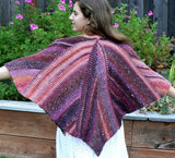 Available as downloadable PDF Bring out your inner artist with The Artist’s Palette Shawl. This collection of four loom knit shawl designs was originally designed by Renee Van Hoy for the August 2013 Mystery Loom-a-long in the Loom Knitters Group. While the overall structure of the shawl is the same, each of the four palettes lets you create a very different design. You may also choose your loom size and yarn weight, to create a shawl very unique to you. Palette One: Impressionist Yarns for this palette are reminiscent of a Monet painting. Choose a soft variegated yarn with a coordinating, perhaps darker solid for this palette. Your shawl with have some basic color work striping. Palette Two: Arts and Crafts Yarns for this palette are reminiscent of a Tiffany stained glass window. Choose 4 solid colors, and a black yarn to edge them with. This shawl is bold and striking in its appearance. If possible, choose an edging yarn that is slightly heavier weight than the 4 colors. Keep the 4 colors the same weight. Palette Three: Pop Art Yarns for this shawl pop and swirl in the style of the 1960’s. Choose three solid colors, a darker, medium and lighter color. Your shawl will have some basic color work striping. Palette Four: Paint by Numbers You’re on vacation, relax and go with the flow. Choose a single yarn in a long color stripe palette for your shawl. Let the yarn do the painting for you, there is no color work in your shawl. All four of the shawls may be made on a 3/4 inch (large gauge) loom, 1/2 inch (medium gauge) loom, or 3/8 inch (small gauge) loom. You may choose lace, fingering, DK, worsted or bulky yarn. The collection includes a large print version of 50 pages, a small print paper-saver text version, and a separate file with your cover, blocking sketches, and photo gallery.