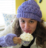 The Cozy Cable Collection has six coordinating patterns for loom knitters. Easy on your hands, easy on your looms, these are fun and fast patterns you are sure to love. The e-book comes in two versions, a large print (24 point font) and small print (12 point font) file. Both have a cover and full photo gallery. Files are tablet and reader friendly. Extra Marshmallow Mitts - 3/8 inch gauge loom, 34 pegs in the round Cup of Cocoa Hat - 5/8 inch gauge loom, 25 - 28 pegs flat knit Spiced Cider Cowl - 5/8 inch gauge loom, 30 pegs flat knit, adjustable Hot Chocolate Mitts - 3/8 inch gauge loom, 34 pegs in the round Hot Buttered Rum Hat - 5/8 inch gauge loom, 25 - 28 pegs flat knit Caramel Latte Scarf - 1/2 or 5/8 inch gauge loom, 26 peg flat knit, adjustable