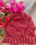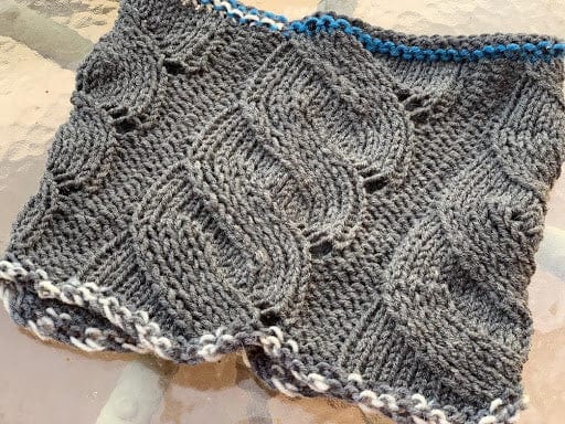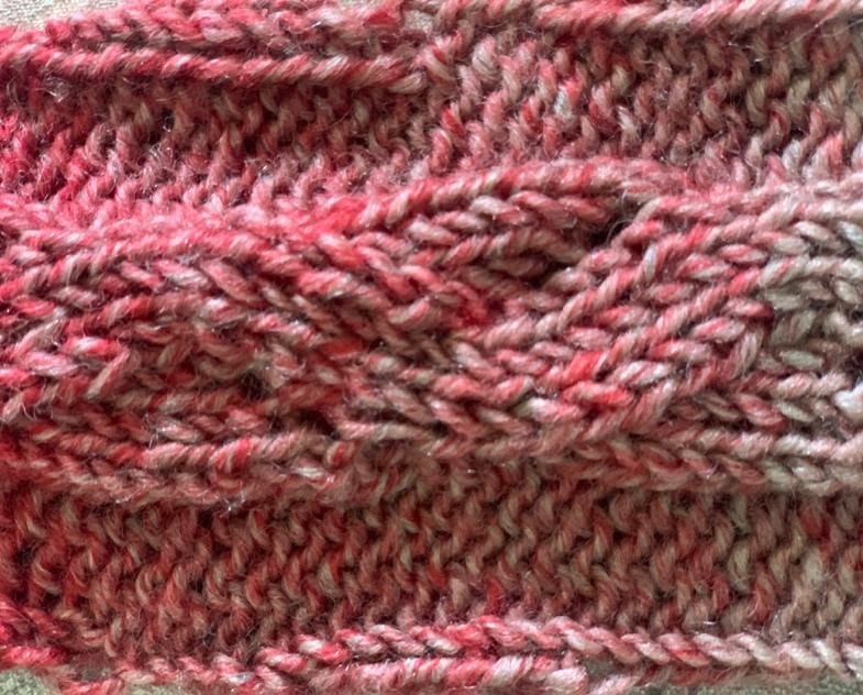 Cables are classic knitting textures; their winding formation adds elegance to the knitted fabric. Oftentimes for many beginner loom knitters it can be cumbersome grouping and moving the stitches. Here is an easy pattern that forms lovely cable like knit, yet it’s only eyelet stitches that form it faking the appearance of cable knit.