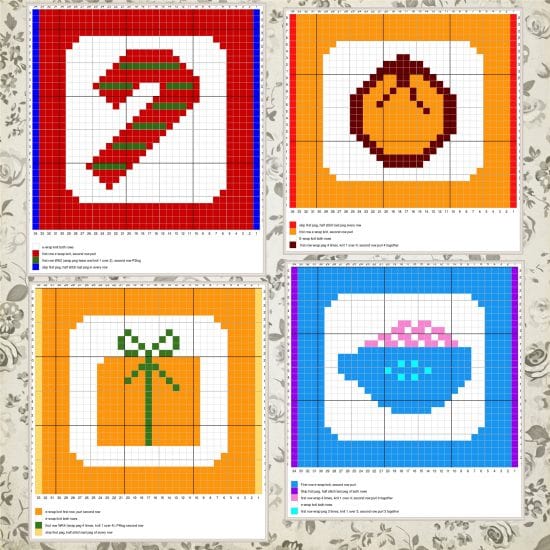 In addition to step by step, row by row directions, a color-coded chart is also included with a customized loom knitter's key. You may knit with either - you do not have to read a chart to make the patterns.