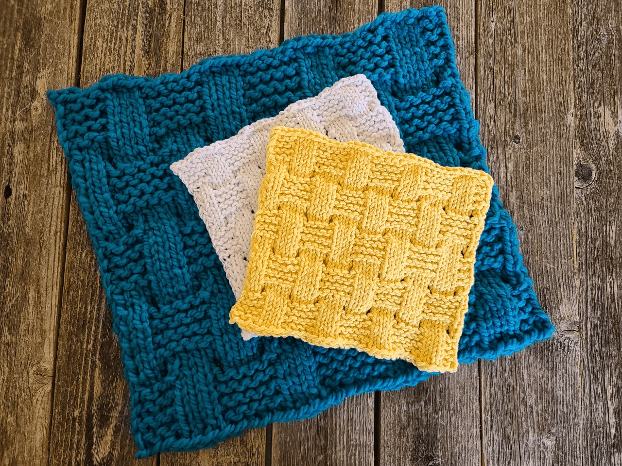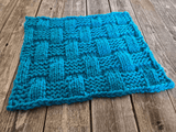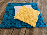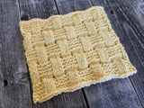 This fun washcloth weave by JaNae Yagi is great for making gifts. The Basketweave Square is worked flat on any gauge loom with at least 34 pegs. The texture is created with a mix of knit and purl stitches with increases and decreases. Perfect for dishcloths and washcloths, or sew together to make afghans and pillow covers!