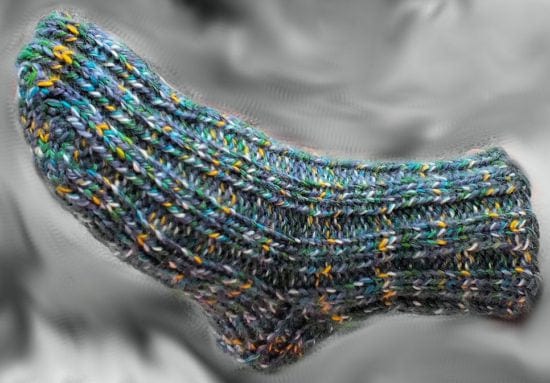 Available as a downloadable PDF Blue Hugs Socks by Scarlett Royal are a rib stitch sock that uses a gusset style heel, with a rib stitch to tip of toe. It hugs the foot in most every area due to the rib stitching. I write a version from toe up and cuff down on the 36 peg 3/8" gauge loom. I also include notes how to make the pattern in your size and give an example of an adult on 56 peg 1/4" gauge loom with a simple stockinet toe. Video tutorials help as guides for this pattern plus photo tutorials on the terminology. It is an intermediate sock pattern that also includes written instructions.