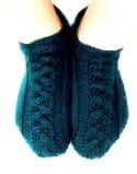 This is the Braided Ankle Sock it is an advanced pattern by Scarlett Royal, using the new technique of the gusset style heel or heel flap for the looms simplified, it also shows reverse cabling, and a toe down method, plus kitchener bind off on the loom no needles needed, and short rows. Directions for both the 50 and 56 peg 1/4" gauge looms for older child to adult sizing.