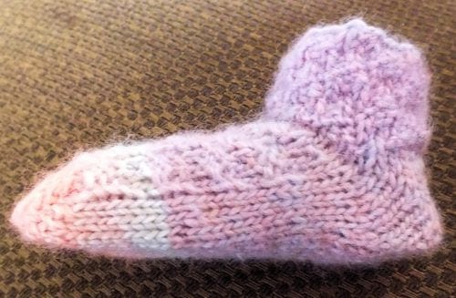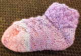 Use our 36 peg 1/4" gauge to make this intermediate level child socks Size 2T. New Heel Style (double wedge heel/ tomato heel) and lace bind off, decrease, yarn over, kitchener bind off, checkard heart stitch, knit, and purl techniques.
