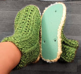Available as a downloadable PDF Here's a great pattern by Scarlett Royal that includes instructions on how to design any bootie to fit to flip flop bottoms while giving you a pattern using 2 pegs as 1 technique. 1/2" 36 peg is one of the looms that works for this pattern but it includes instructions for other sizes and gauges as well. Includes beginning to end video tutorial. It is a intermediate pattern due to math equations to figure out your sizing, loom, and yarn. It also includes photo and written instructions.