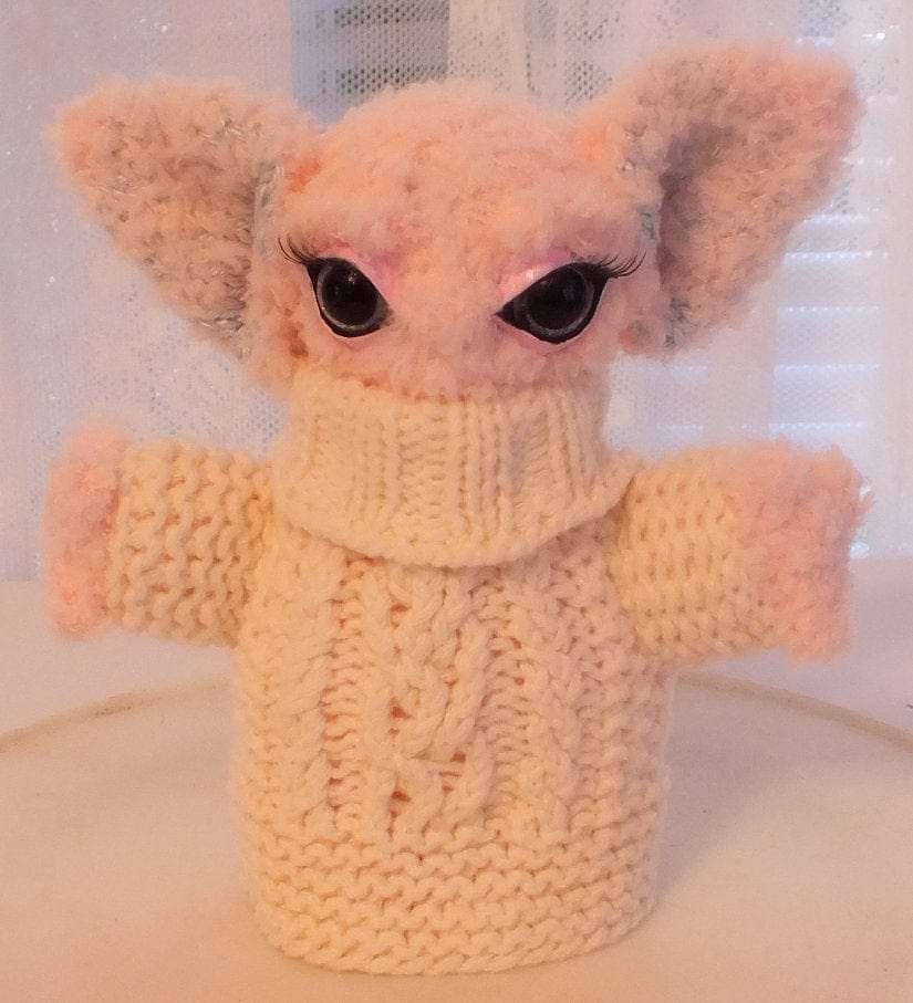 This adorable alien by Scarlett Royal was made on the 3/8" gauge 36 peg loom. It is an advanced pattern using techniques such as short rows, knits, purls, and sewing. Includes links to video tutorials.