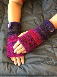 These adorable fingerless gloves by Angela Steffen are the perfect addition to any outfit. Made on a 1/2" 24 peg loom these gloves will fit most adult women.