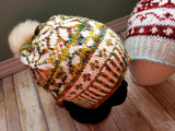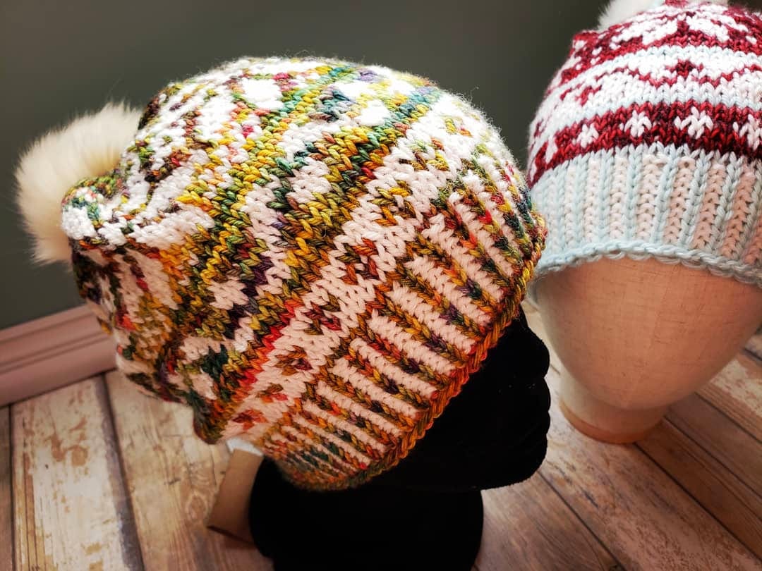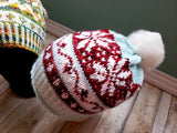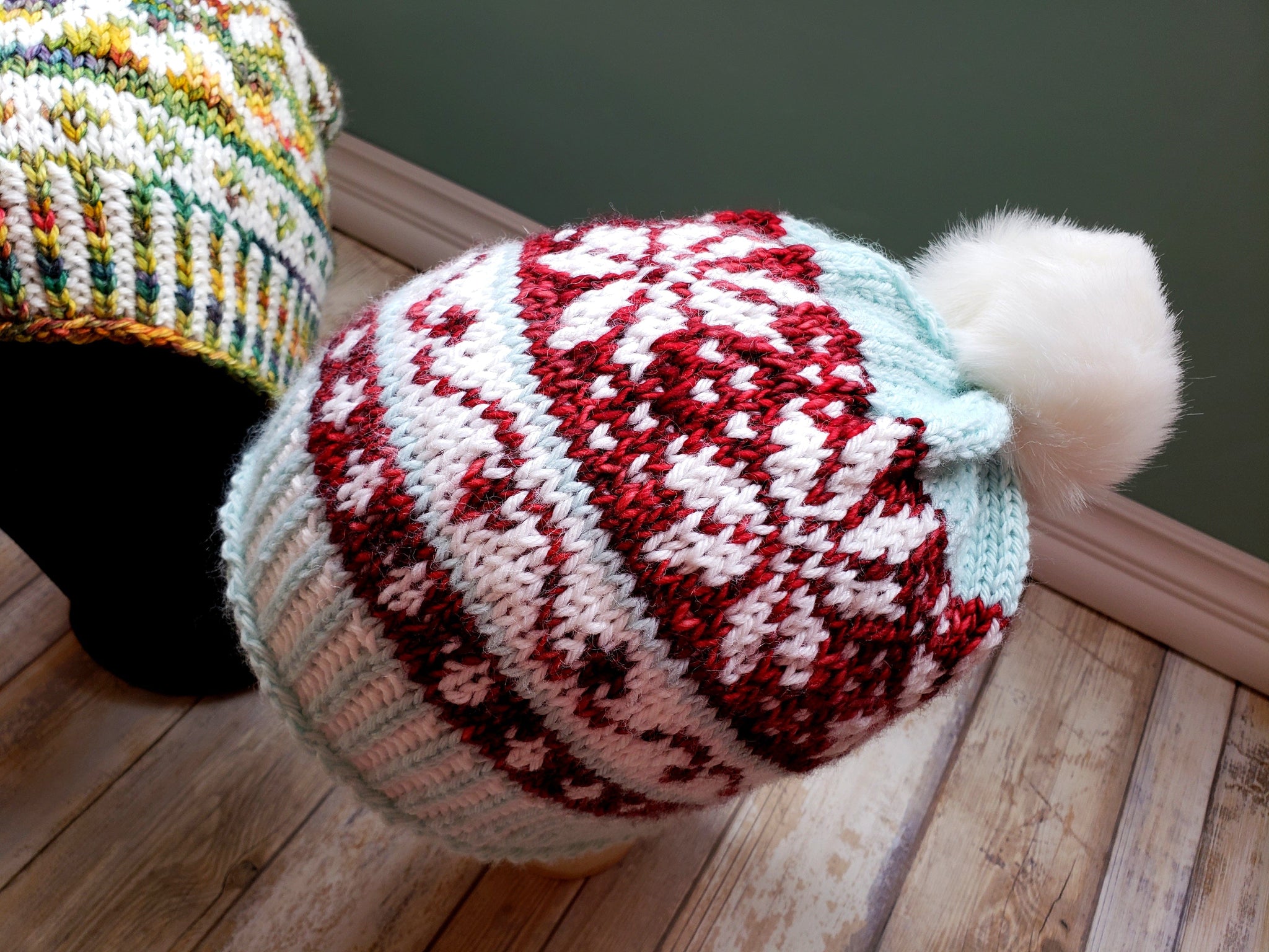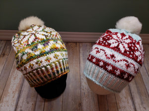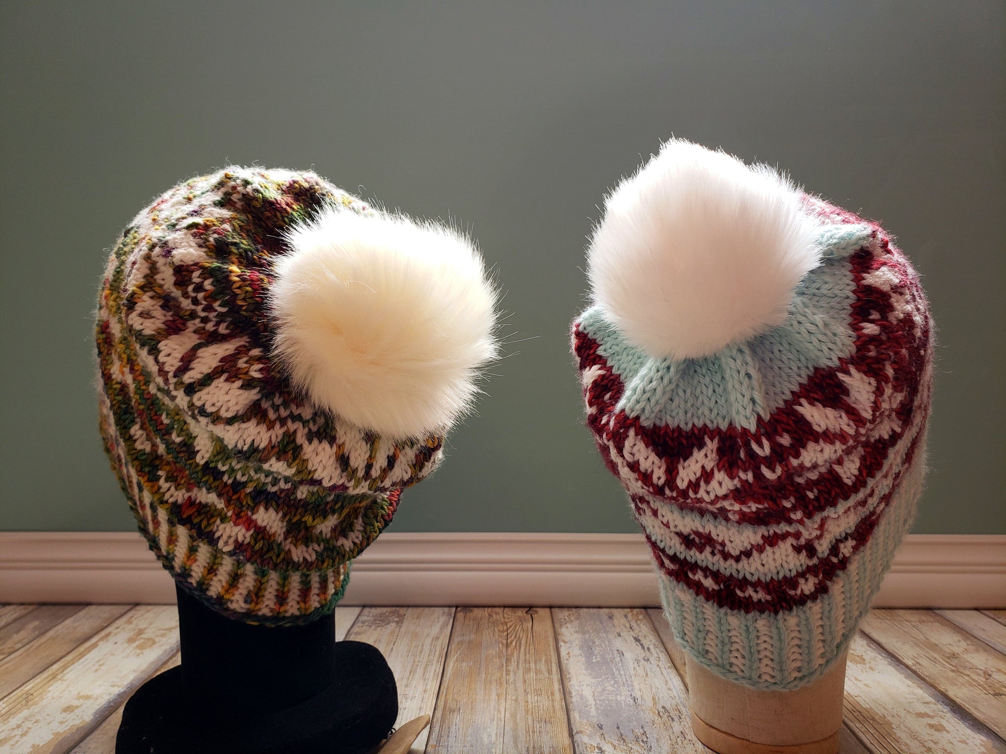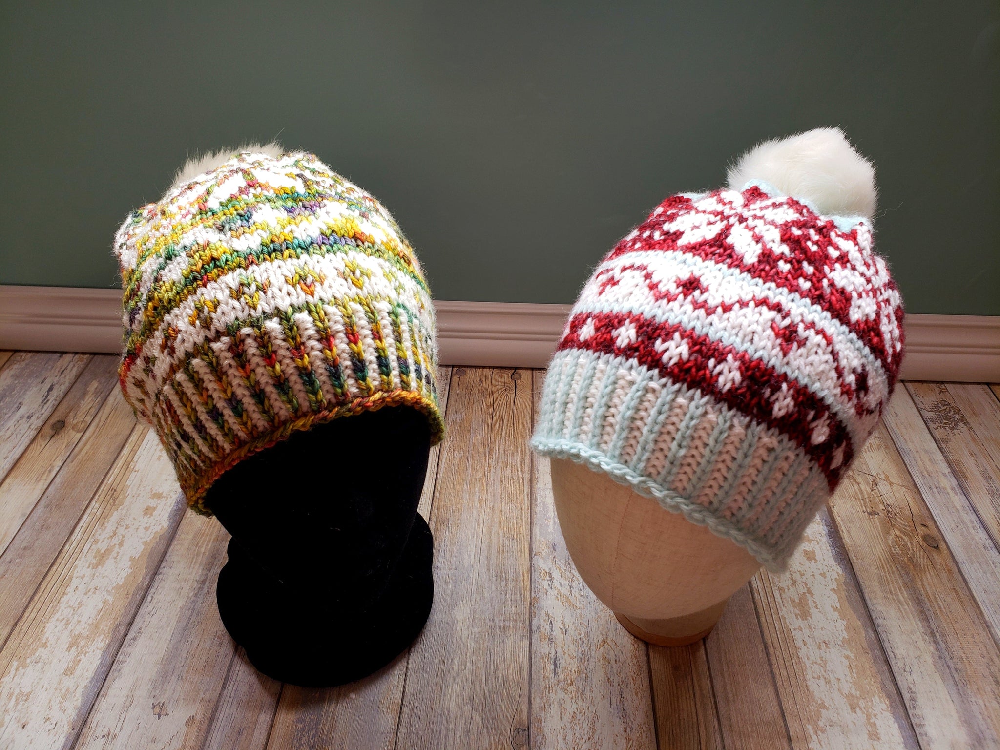 The Faire Winter Beanie is worked in the round from the brim up and has a slightly slouchy fit. The stranded knitting makes the hat extra warm. This pattern includes options for regular gauge (1/2" with at least 80 pegs; a universal loom option requires 96 pegs) and small gauge (3/8" adjustable loom with 108 pegs; universal loom or the 3/8" X Loom). Will fit most adults. These hats are a wonderful stash buster project!