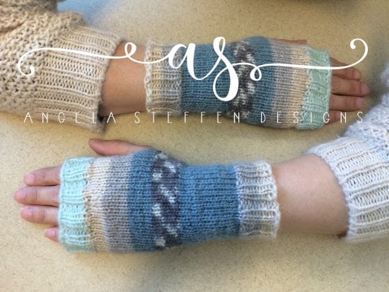 Available as downloadable PDF The patterning of these mitts by Angela Steffen happens due to the yarn--it is much simpler than it appears. Why do the work if the yarn will do the work for you?? Uses less than one skein of a self-patterning yarn, such as Yarn Bee Fair Isle (available at Hobby Lobby). The pattern uses a single strand of yarn, so it is written for the 3/8″ 36 peg Adult Small/Youth Glove & Sock, Small Gauge loom This is a simple pattern that uses mainly U-knit. It also uses Purl, Ewrap, and Slip Stitch.