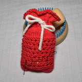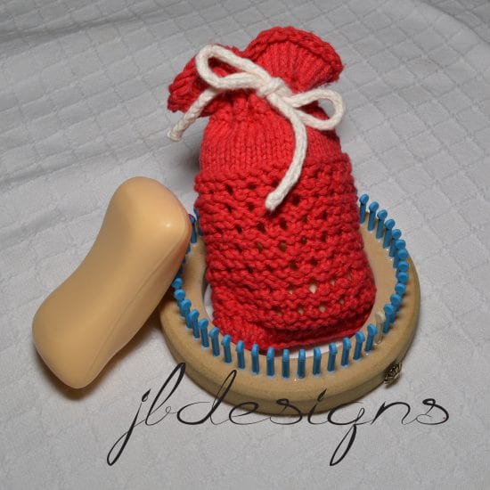 Available a downloadable PDF Use this soap sack created by Joanna Brandt on the 36 peg 3/8" gauge round cindwood loom for either 4 oz bars of soap or to store left over pieces of soap to use in the shower or bath. Place bar or small pieces of left over soap in soap sack, close drawstring and use to wash body. Also can be used as a small party favor bag, organizer pouch for purse, holder for cell phones or sack for other small things. Pattern includes detailed written instructions as well as video links to help with techniques used. Best suited for the intermediate loom knitter or those looking to learn new stitches. In addition to the 36 peg 3/8" gauge round small adult/youth glove sock loom you will need roughly 55-60 yards of 100% cotton worsted weight yarn. Recommended to hang dry soap sack after use. Pattern can be adapted to other looms with even number of pegs/peg multiples of 2.