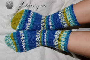 Pattern fits most teens to adults with notes on how to adjust for different shoe size and length preferences. Links to video tutorials are included to help with certain techniques.