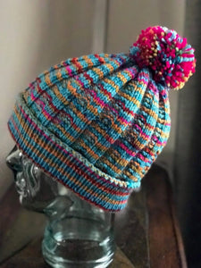 Available as a downloadable PDF How's this for a colorful fashion! Designer Robbin Runtas has created this adorable pattern for hat and matching neck warmer on our 120 PEG 1/4 GAUGE LOOM with #4 YARN. She says it can be created on any loom with multiples of 8.