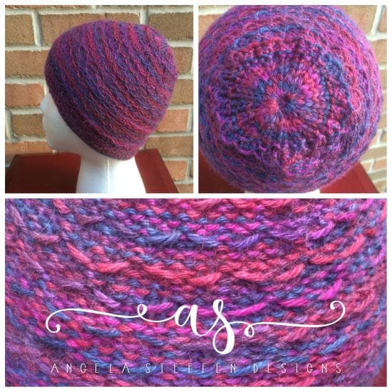 This gorgeous hat, by Angela Steffen, was made specifically as a chemo cap with soft and non-irritating yarn. Lorna's Lace, Honor, is a DK weight with 70% alpaca and 30% silk. It is so soft! Pattern uses less than 1/2 the skein (about 130 yards).