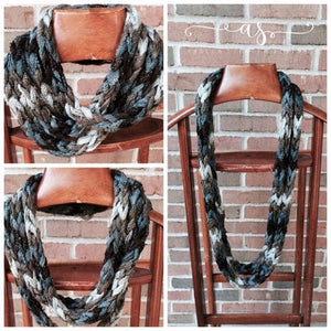 Available as a downloadable PDF This easy to do pattern by Angela Steffen uses any 12 peg loom. Ideal for the CinDWood 5/8″ 12 peg Newborn Slipper or the 3/4" 12 pg KK pink flower replacement loom. This is a simple, beginner level pattern. It uses only Ewrap stitches. Requires one skein of Ruffle type of yarn (or less, depending on yardage and how long you want finished scarf). Do not unravel yarn to use as traditional ruffle yarn; keep it folded together to use as a bulky yarn.