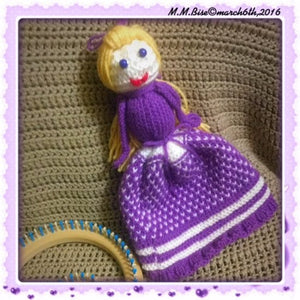 Available as downloadable PDF This cuddly pattern by Malissa Bise is worked in the round as one solid piece. It requires both the 1/4" 80 peg Baby Hat, Fine Gauge Loom and 1/4" 30 peg Infant-Toddler Sock, Fine Gauge Loom. The skirt is not closed at the bottom, So it also makes a super cute toilet paper roll cozy?.