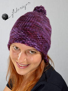 Available as a downloadable PDF This cute beanie by Joanna Brandt is designed to be able to worn with either your hair down or in a low ponytail. Pattern is written for either the 59 or 60 peg 1/2" gauge Adult CinDWood Hat Loom (or universal hat/scarf loom) and fits most average adult women to petite men (21-23" head circumference). This pattern is very easy to adapt to other looms as well. Pattern is suitable for beginners familiar with how to do the knit and purl stitch and includes video links on all techniques used in the pattern. Pattern requires approximately 150 yards of worsted weight yarn. This hat pattern was inspired by a picture Joanna saw online