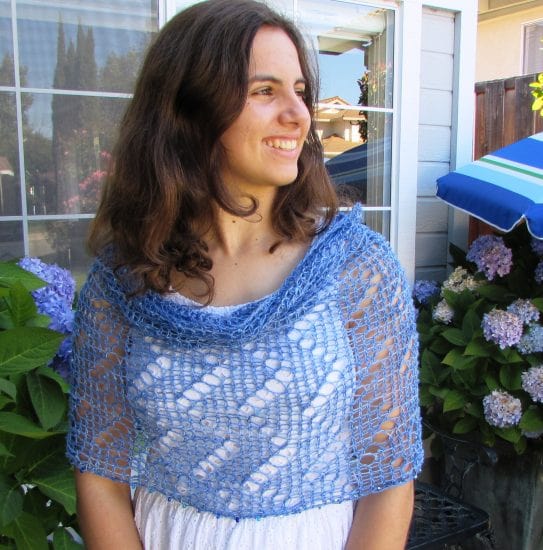 This beautiful pattern by Renee VanHoy is called "Moondance Capelet". It is a beaded lace design. written in two sizes, for both the 1/2"90 peg small round afghan and our 1/2" 120 peg large round afghan loom. The pattern is written in the round, so only those looms will work well. Perfect project to wear on a summery night. Elegant and intricate.