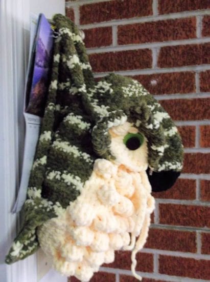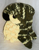 Available as a downloadable PDF This Owl Bag pattern created by Scarlett Royal is breathtaking. It looks just like a stuffed animal but is versatile and can be used to carry a light sweater, and all your little belongings. Made on the CinDWood 60 peg Adult Hat Loom 1/2" gauge.