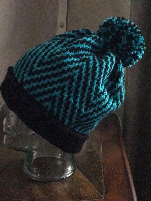 Available as a downloadable PDF Designer Robbin Runtas has created this wonderfully thick and stylish hat. Using the 120 peg 1/4 fine gauge loom and #4 yarn. Robbin used two colors that can be made on any loom with multiples of 24 and she prefers the look of the 1/4" gauge. Pattern includes instructions for a neck warmer.