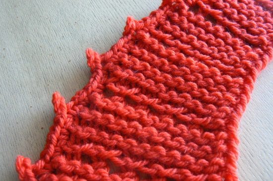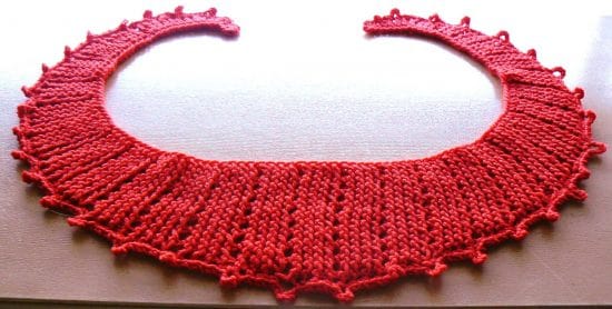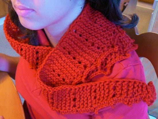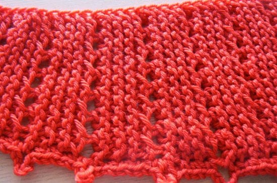 Available as downloadable PDF This little scarf by Renee Van Hoy is worn in many ways; as a collar, a wrap, front, back or sideways. It is made from side to side on a 1/2 inch gauge knitting loom. At least 20 pegs are required for the pattern. A larger gauge loom may be substituted. This is a perfect "first lace" project. Both a solid and multi-colored yarn work well with the Poppy. Loom: 20 pegs, 1/2 inch gauge, flat knit-- such as CinDWood's 1/2″ 20 peg: Afghan Square Loom Yarn: 130 yards DK weight (heavier weights may be used with larger gauge looms) Size: about 66 inches long, 6 inches deep at center; size is adjustable