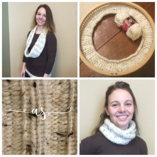 Pattern used CinDWood's 5/8″ 100 pegs: Large Round Afghan Loom. (Could also be done on "S" loom with peg wedge).