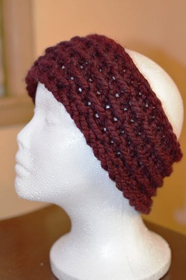 Available as a downloadable PDF This pattern includes 2 different variations so essentially is 2 patterns in 1! :) This is a quick and easy pattern for a loom knit headband/ ear warmers. This pattern is suitable for beginner to intermediate level loom knitters. You will need a Adult Small/Youth Large 36 peg KK Green Replacement CinDWood loom with 3/4” gauge yarn, loom hook and tapestry needle. Other CinDWood looms with even number of pegs and appropriate yarn for the gauge of loom may also be used. Either 2 strands of a worsted weight yarn or one strand of bulky yarn is needed. Techniques used include: ewrap, purl, skip pegs, and super stretchy or basic bind off. Video links are provided to help with techniques used. This is a fun and fast pattern that should take around an hour to complete and can help use up left over partial skeins and makes wonderful gifts!