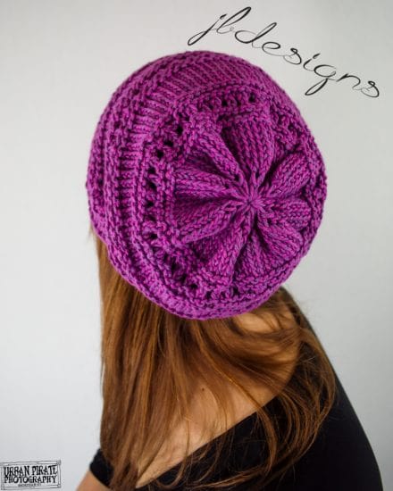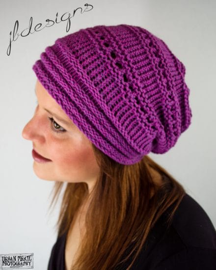 This pattern includes detailed written instructions best suited for intermediate loom knitters and requires approximately 145-165 yards of worsted weight yarn. Pattern can be adapted to other even number looms that have peg multiples of 4.