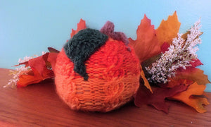 This adorable pumpkin is called the scented cabled pumpkin pattern, has a full video tutorial for it, along with written instructions. It is an intermediate pattern as there is a 4 stitch right cable cross, increasing, decreasing. The 36 peg 3/8" gauge loom was used for this pattern, but any loom in the increments of 6 can be used. You will need rice, a scented oil you like for fall, and a knee high stocking for the project.