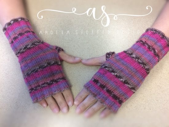 This pattern by Angela Steffen is named for the unique thumb, which is knit on the main glove as a flat panel (sticking up) and then seamed to the main glove after the bind off. The ribbing allows the glove to accommodate many sizes, from teen to large adult.