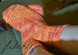 Available as a downloadable PDF Keep your feet and toes warm and toasty with these socks made by Joanna Brandt on the CinDWood 36 peg 3/8" Adult Small/Youth Glove & Sock loom and roughly 170-200 yards of worsted weight yarn (sample uses less than 1 ball of cascade pacific multi in color flame). *These socks make an amazing pair of winter socks to wear with boots or for lighter weight socks you can use dk or sport weight with stretch(#2 or #3). The yarn used for the pattern is important as it needs to be able to stretch and offer elasticity. Wool or wool blends are best for making socks or yarn blends which have lycra or polyurethane. See this article for more information on yarn choices for socks http://www.knitty.com/ISSUEfall08/FEATsocks102.html Tension is also important for proper fitting socks. As you work the yarn across pegs don't yank it or pull it tight. This is a great pattern for both those experienced and beginning with loom knitting socks. Pattern includes detailed written instructions for each section of the sock including row by row instructions and video tutorial for heel and toe shaping. Techniques used include uwrap knit, purl, and wrapping and turning pegs. Pattern includes helpful websites and tips for creating a perfect fitting sock based on shoe size as well as links for various methods to help with binding off your socks. Finished size is 8” circumference and fit average us women’s sock size 9-11. Can be made to fit smaller or larger shoe/foot size by following notes in pattern.