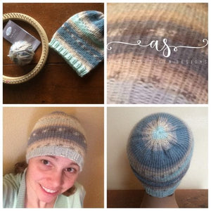 The pattern uses a single strand of yarn, so it is written for a loom with 3/8" gauge. CinDWood fine gauge small adult/youth large loom with 72 pegs was used for sample. Includes measurements to make hat for: Child--72 peg loom Teen/Small adult--72 peg loom Average Adult--80 peg fine gauge adult hat loom
