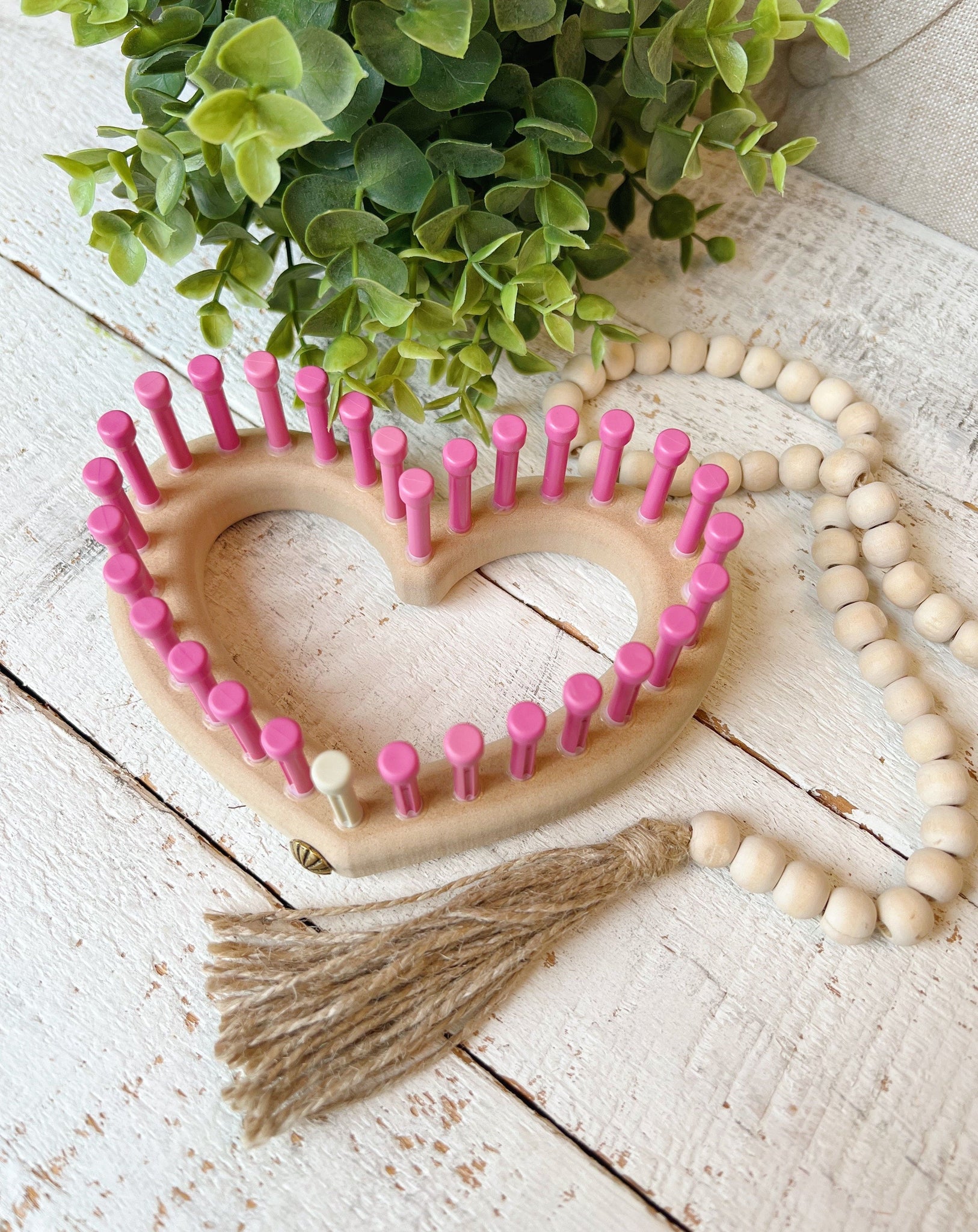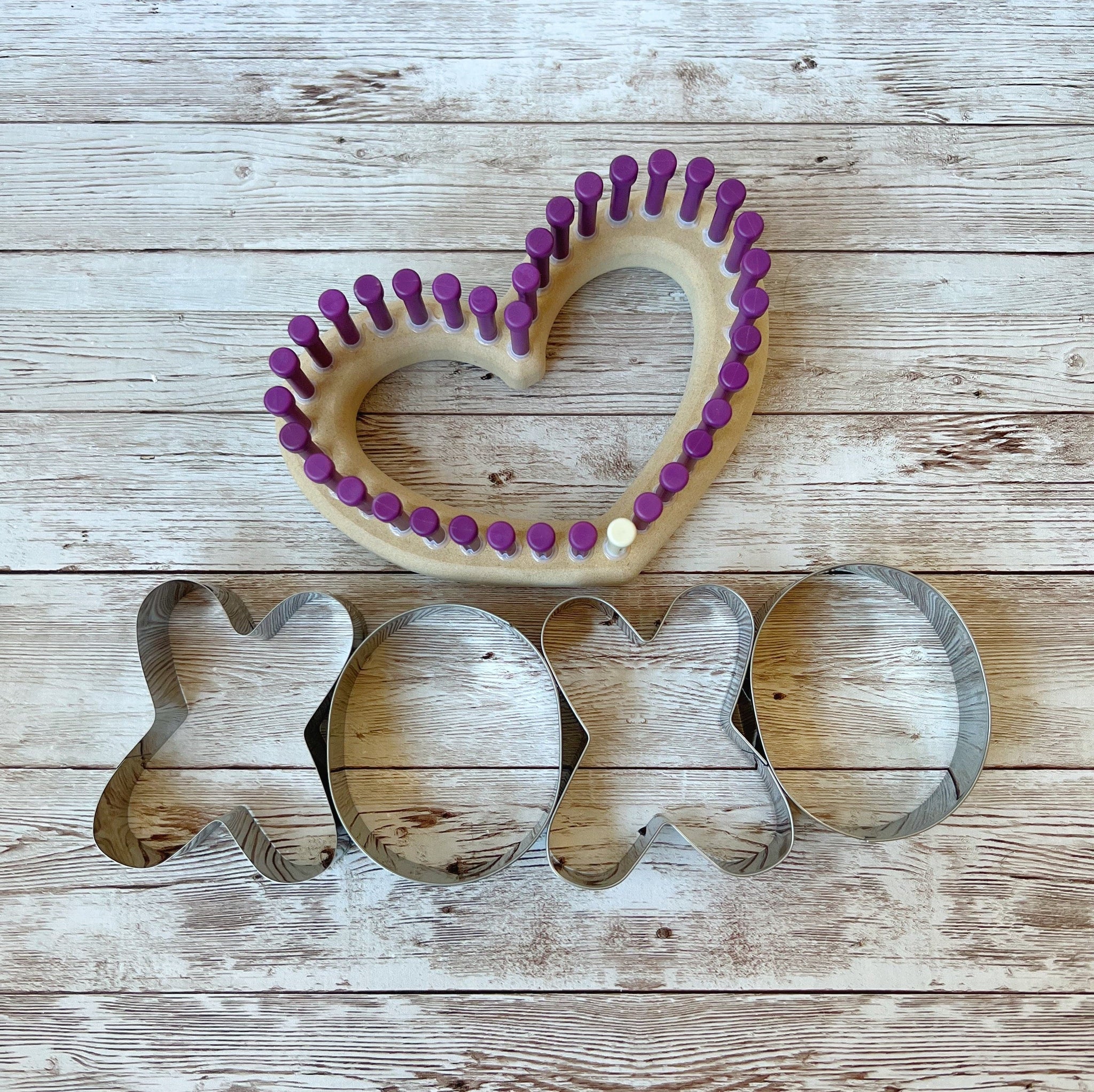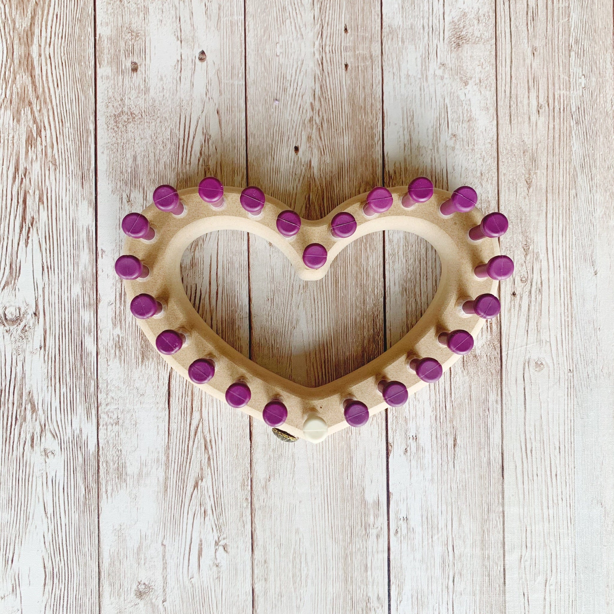 These adorable heart shape Looms are perfect for adult socks, slippers, fingerless gloves, 10 stitch blankets, stuffed animals and more. Available in 4 gauges and 3 colors. Choose from Pink, Purple or Tan. Only available for a few months of the year. These seasonal looms are so fun to use and decorate with.