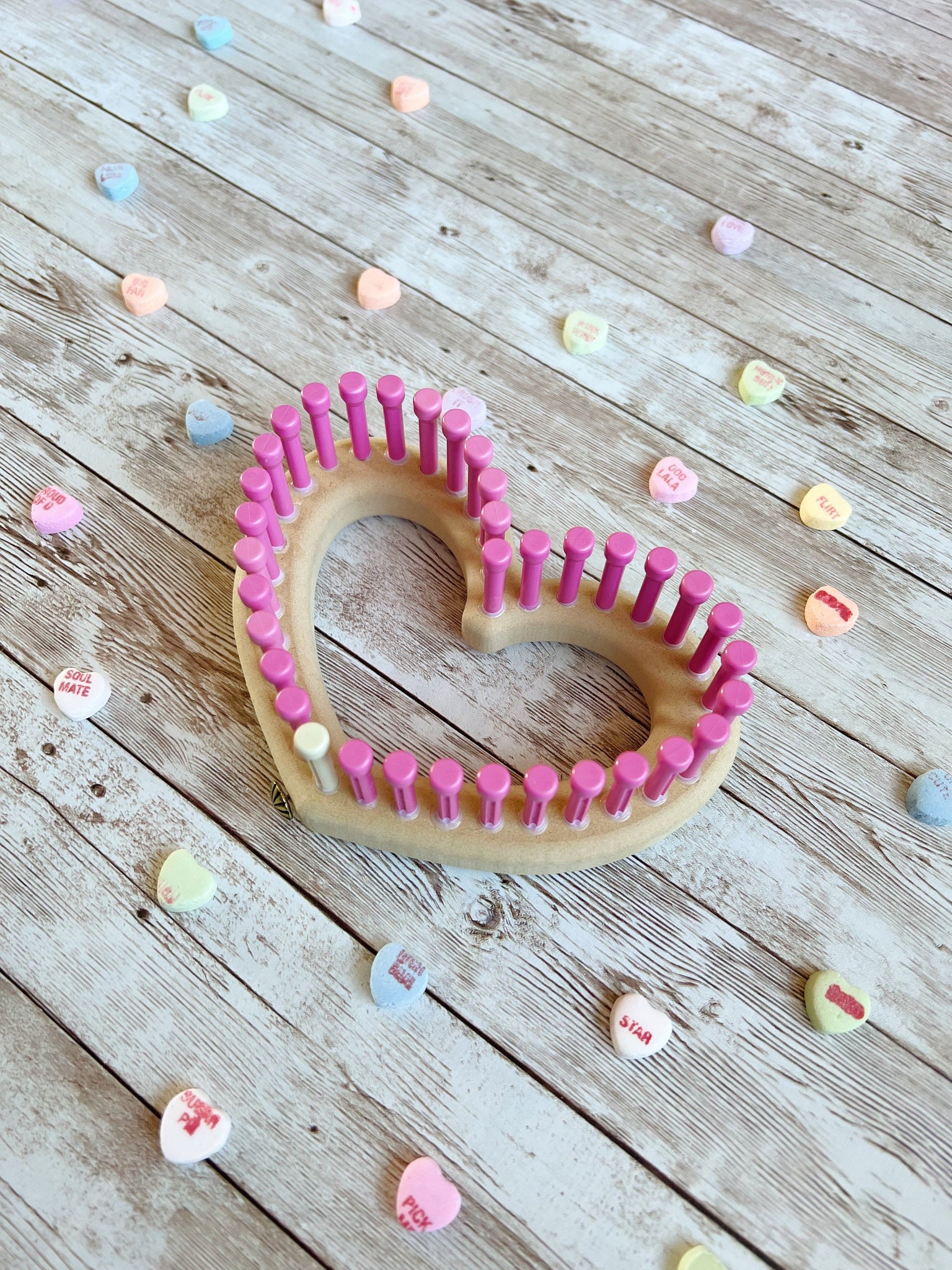 ** The end product does not make a heart shape unless you are weaving. If you are loom knitting around the entire heart, you will have a circular tube that can be used as a sock, glove, baby hat or stuffed animal.
