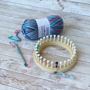 This Aide is a plastic tube that you can feed your yarn through to use as wrapping your loom. It allows you to weave both single rake and double rake yarn patterns with better control and tension and less yarn tangling. It also helps to avoid finger fatigue if you have stiff fingers from arthritis. (LOOM NOT INCLUDED)