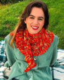 The eight patterns in this collection all have the same basic underlying pennant construction, or more simply put, a long triangle shape. The patterns are all flexible. You may choose the loom size, the loom gauge, the yarn weight and the size you would like to make your scarf. Options are included to make smaller cowl sized scarves or larger shawls.