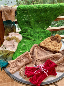 This beautiful Collection of Overlapping Leaves Knit Patterns contains: 3 versions of leaves, 5 stitch patterns and 4 knit patterns created by Farah Kamal. Includes technique tutorial video links