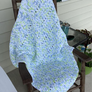 This adorable Baby Afghan by Laurie Schue uses Ewrap & Eyelet stitches. It can be made using 72 pegs on CinDWood 5/8” 75 Peg Small Afghan Loom , 5/8" 100 peg large round afghan loom or Kb Flexee Loom - Chunky 5/8” 72 pegs