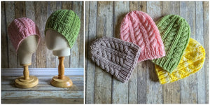 The Chubby Cable Beanie is knit in the round from the brim up and