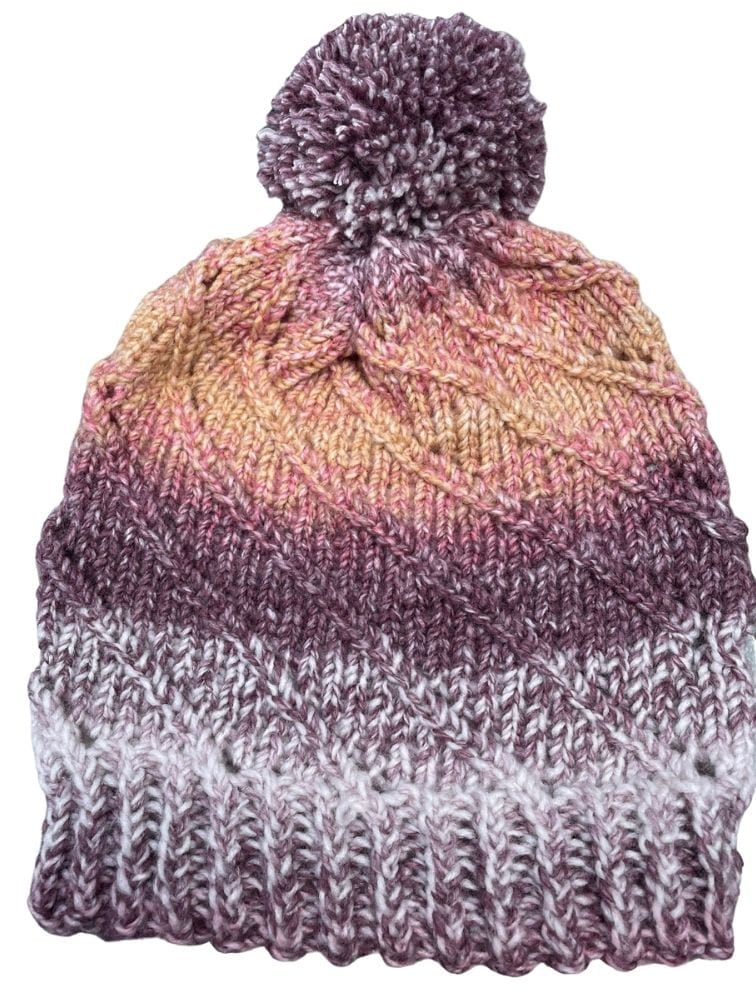 This beautiful hat by Farah Kamal was made using 60 pegs of our 7/16" 76 peg Universal Hat/Scarf loom. It can also be done on a round loom with 60 pegs or any multiple of 10. Includes charts and video of how to create raised spiral ridge.