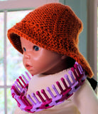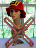 This adorable firefighter hat, which can also be a safari or sailor hat with color changing by Scarlett Royal is a perfect addition to your families costumes collection. Made on the both the large 5/8" gauge universal x loom and the KB flexee chunky loom. There is also a round loom version on the 48 peg 5/8" gauge loom which can be used. There is a video tutorial for both versions. It is an intermediate advance pattern as it includes some modular knitting, increasing, and decreasing.