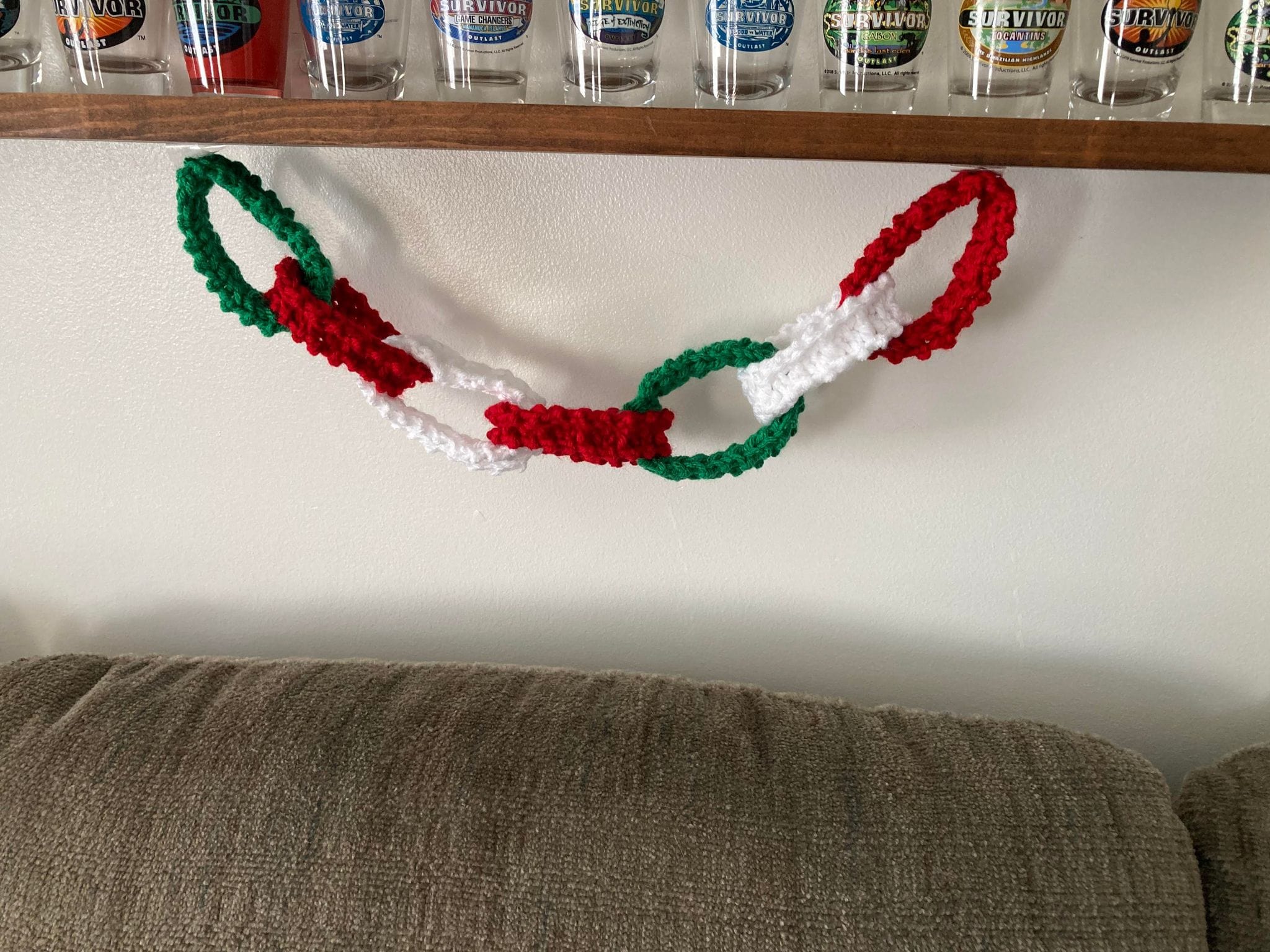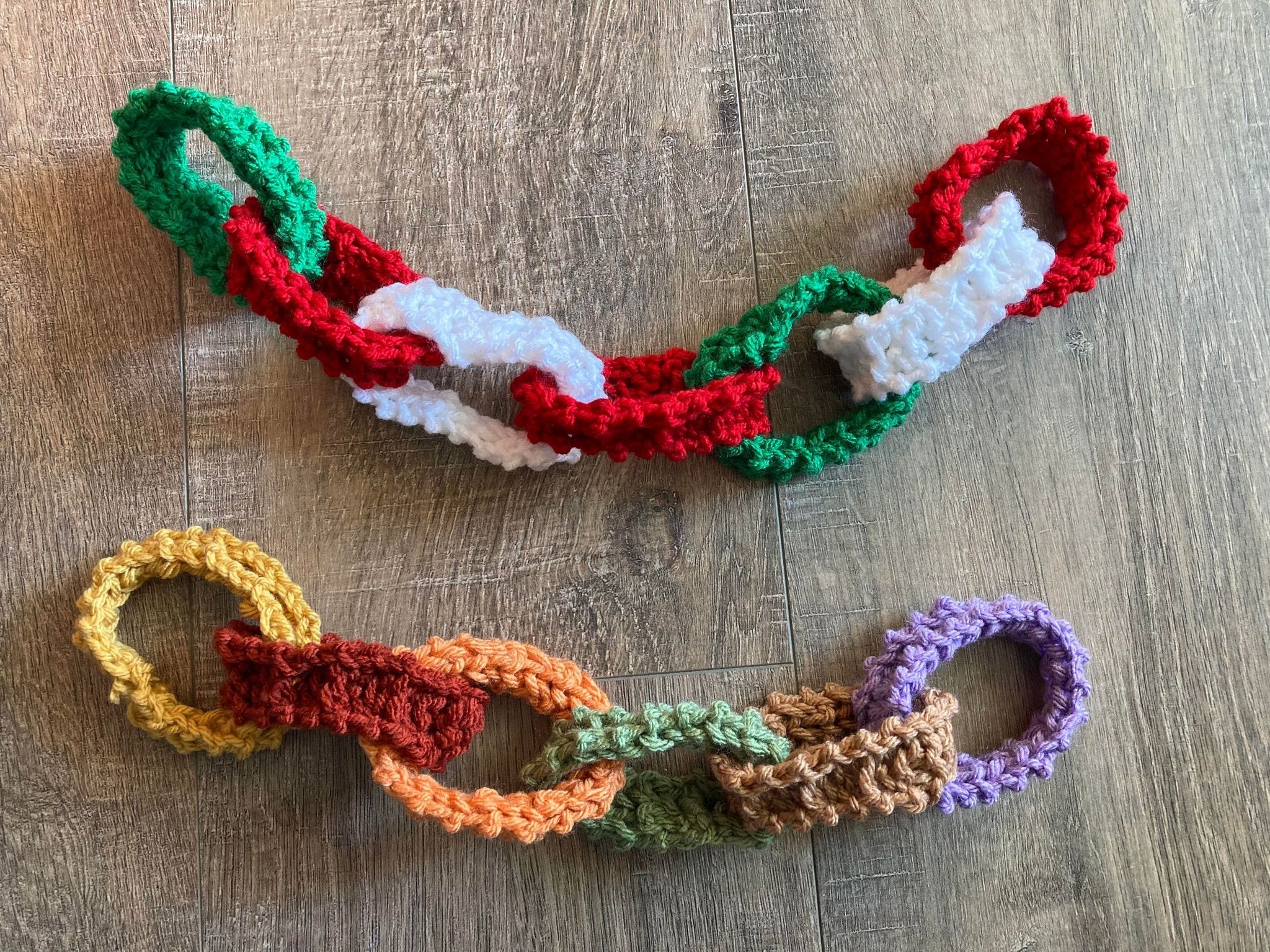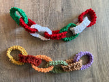 This adorable garland decoration can be made any length and for any holiday using various colors of yarn. Made on any 1/2" gauge loom using 4 pegs, Laurie Schue has designed this fun decorative pattern.