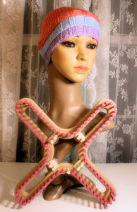 This a fun hat by Scarlett Royal is a beginner pattern for the large universal x loom in the 1/2" gauge. It includes but a written formula and simple instructions to make on a round loom as well. It has a full video tutorial.