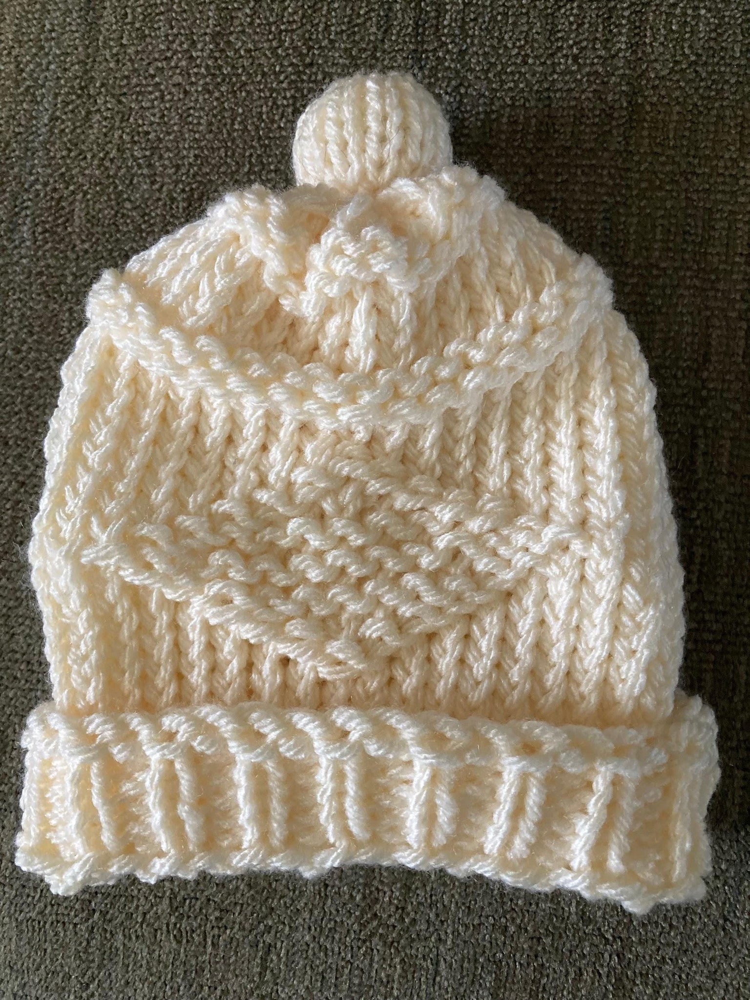 This beautiful baby blanket and baby Hat pattern are a perfect gift for your next baby shower. The blanket was made on the Cindwood 1/2" 90 peg small round afghan loom and the hat on a 1/2" 36 peg baby hat loom. Pattern by Laurie Schue