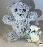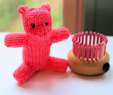 This adorable pattern was created by Scarlett Royal on the 24 peg 3/16" gauge loom but can be done on any gauge 24 peg loom. The larger the gauge the thicker yarn and larger the end project will be. This pattern includes a full video tutorial, along with a detailed photo tutorial. This is an advanced pattern due to the modular knitting to make a bear without seams.